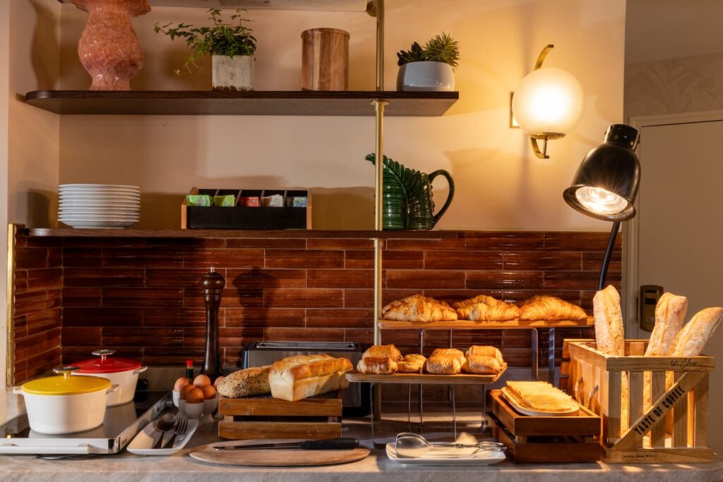 buffet avec pains et viennoiseries hotel saint-germain-des-pres-paris | hotel des 2 continents