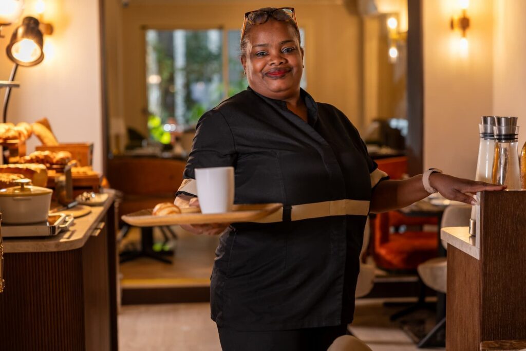 femme servant le petit-dejeuner avec le sourire - hotel 3 étoiles paris 6